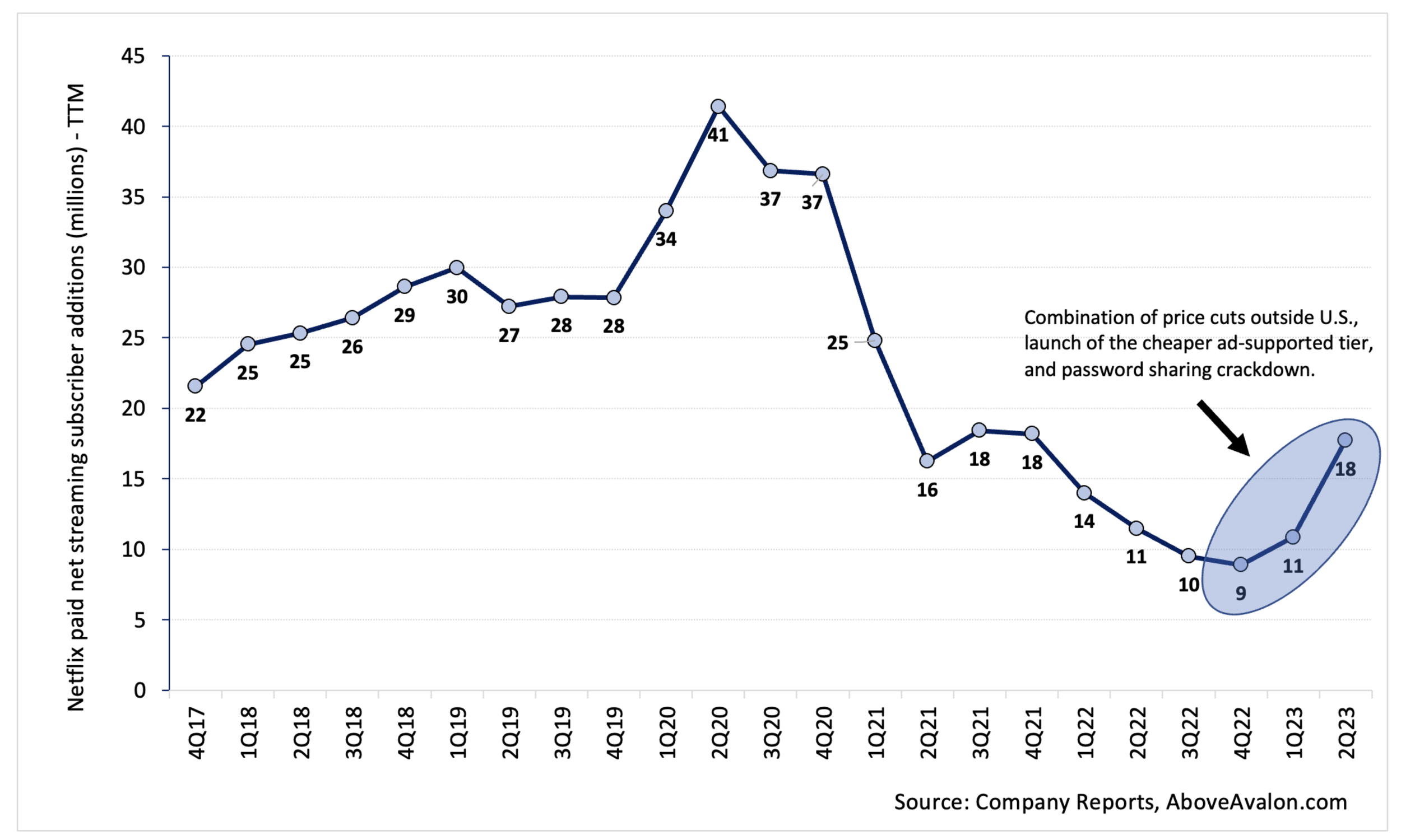Price cuts outside the U.S., the launch of an ad-supported tier in a number of countries, and to a lesser extent, the password sharing crackdown, are leading to renewed paid subscriber growth.